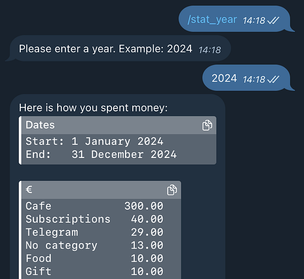 New command: /stat_year shows spending statistics for the whole year. Because the end of the year is around the corner and people like having their years in review