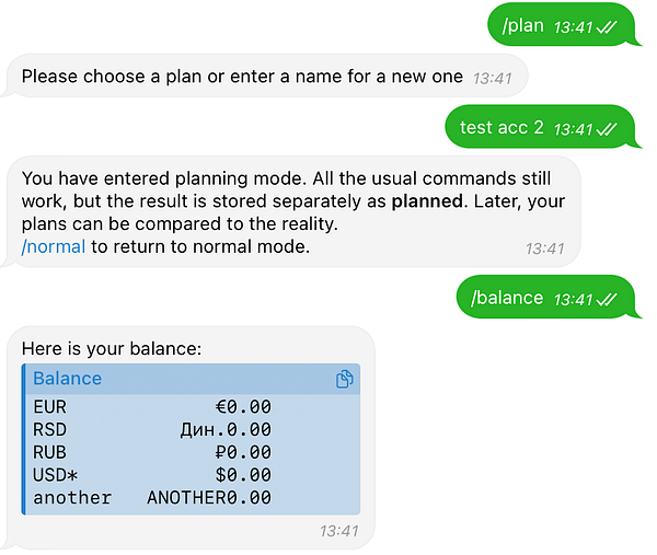 When entering planning mode, create an account for every currency used in normal mode