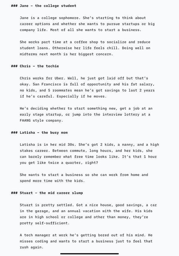 develop personas so I can teach through stories #FindYourIdea