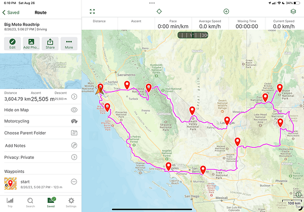 outline route for moto trip