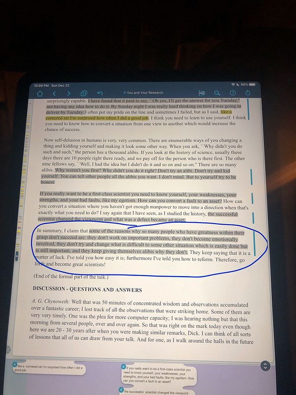 finish Hamming’s You and your research