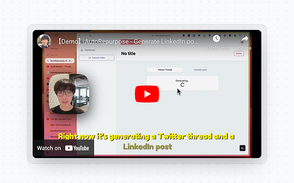 add demo on lp #autorepurposeai www.autorepurpose.io/