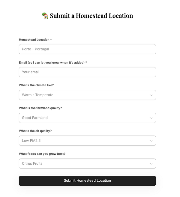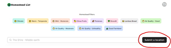 Homesteaders🧑🌾 can now submit their own locations! These will be inserted in Airtable where I can approve them or add information about the location. Then they will be placed on the website's leaderboard where everyone can check them out.