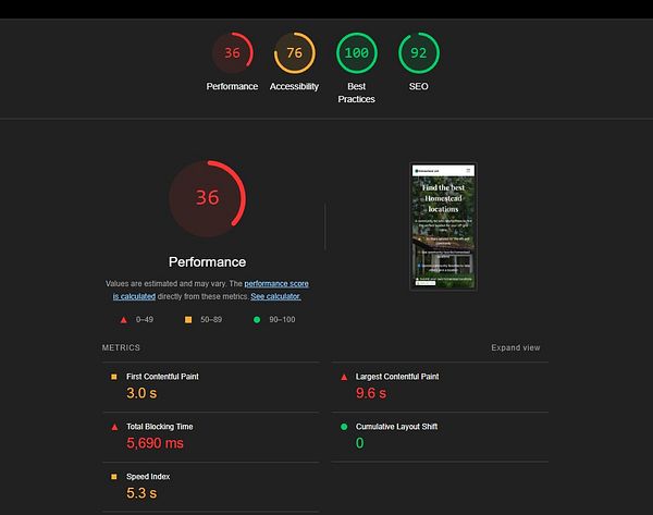 Noticed that the website was loading pretty slow. Apparently I was using ~2MB images😅 Lighthouse report is still not great, but the website is definitely faster now.