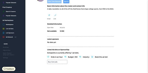 added listed ad slots to the creators page and paved affiliate button to get 10% for each booked ad slot on their marketplace #sponsorgap
