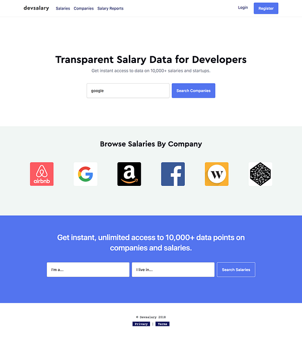 create companies index mvp #devsalary
