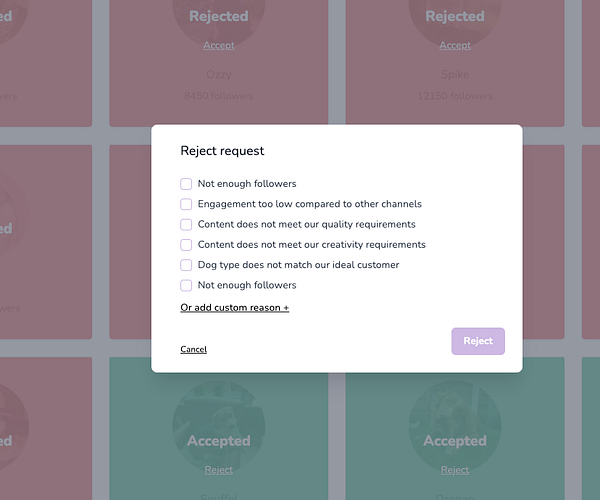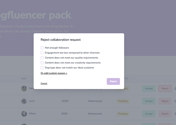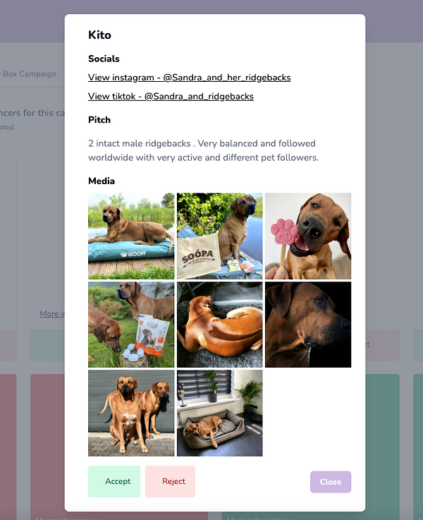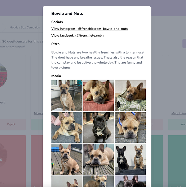 Recreate 'choose dogfluencers page' (with bulk accept or reject)