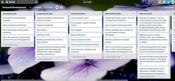 Consolidate my tasks, personal growth goals, brainstorms, notes, etc into Trello