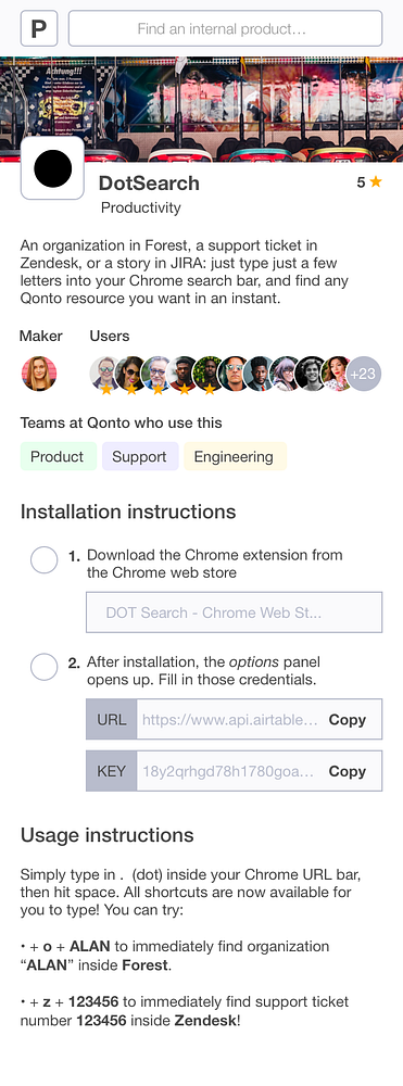 Add options on product listing to ask questions, suggest improvements, or report bugs