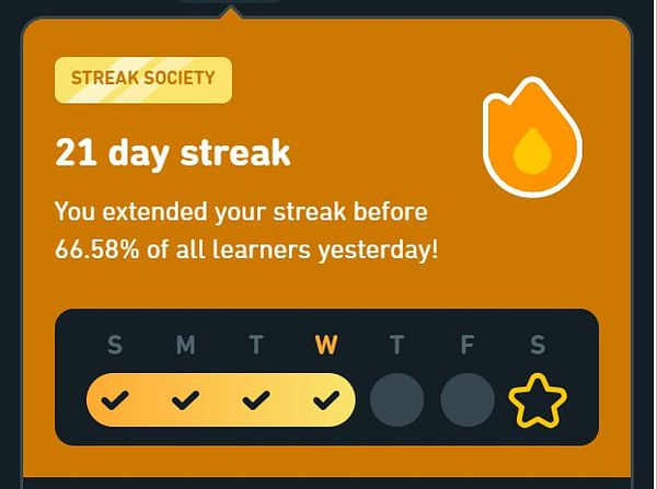 ten days streaks. One lesson per day