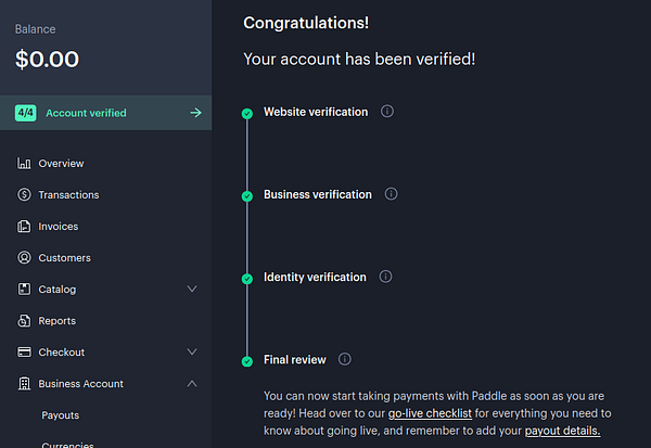 Validated the Paddle integration by running a live transaction for