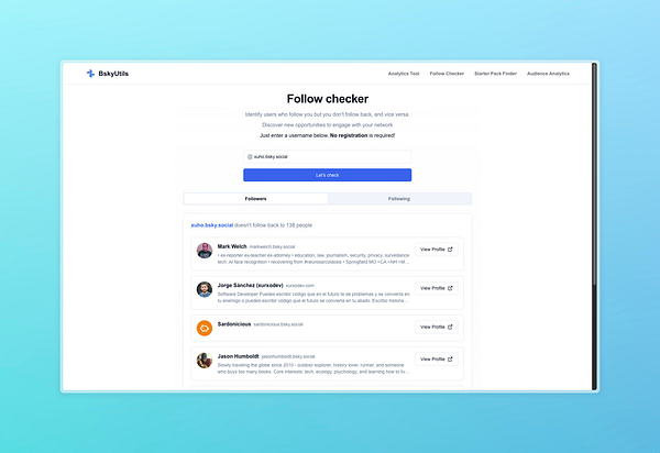 - Follow Checker: Identify users who follow you but you don’t follow back, and vice versa.