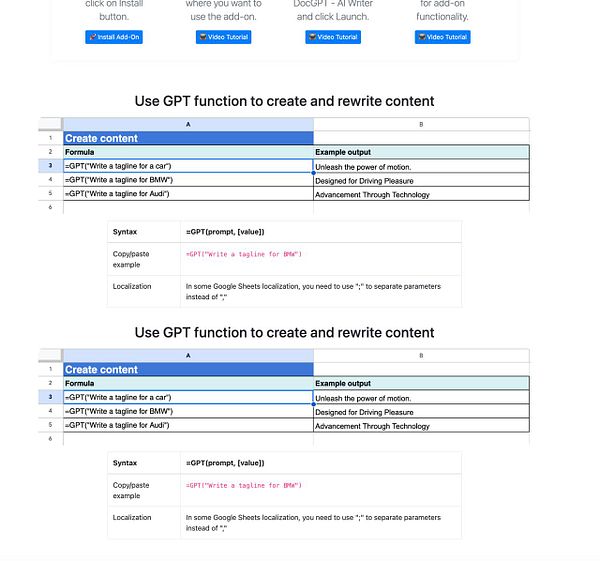 🤖✨✍️📄 Add-on for Programmatic SEO and Data Enrichment - ChatGPT for Google Sheets: docgpt.ai/s