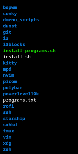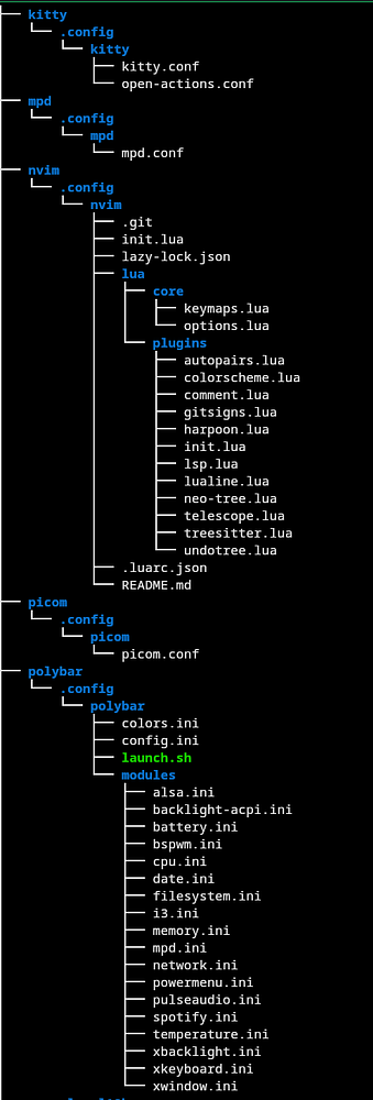I have dot files for my neovim configuration, polybar, bspwm and a lot of other programs. That help me to keep the same configuration between computers and restore my configuration when I reinstall.