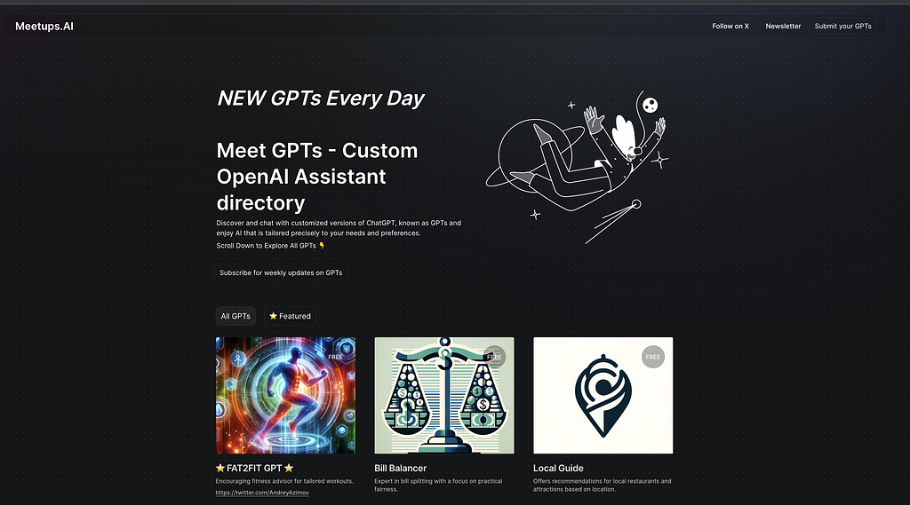 🚀 I simply replied that after months of trying to build great products, I now decided to just go for it - build and launch something. Putting all my non-technical knowledge together and figuring out a lot of things that I had no idea about, I launched my first product - a GPTs directory Meetups.AI (a terrible domain name, but I have promised myself to not worry about domain names too much).