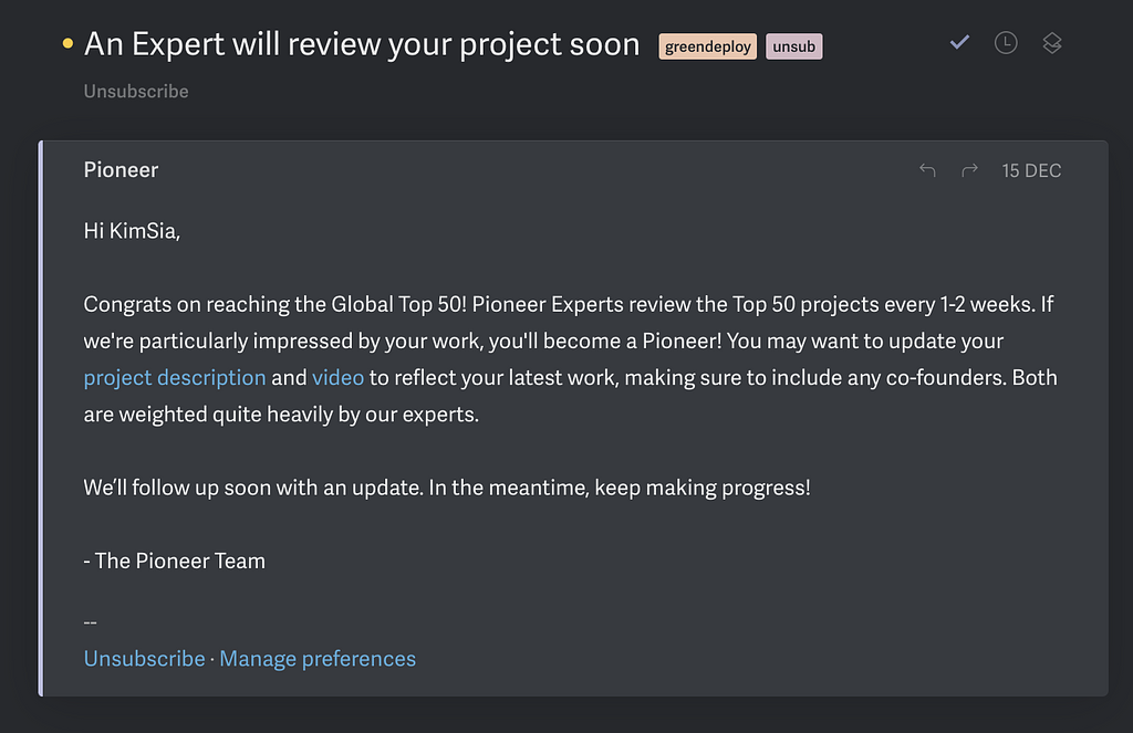 First time reach pioneer.app global 50