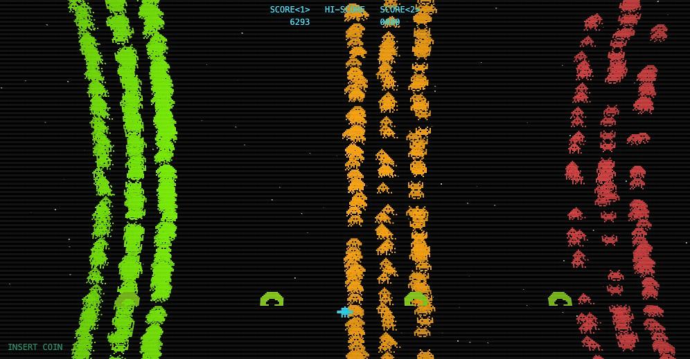 Demo screenshot of the Space Invaders theme. Green = 2xx, orange = 4xx and red = 5xx status codes.
