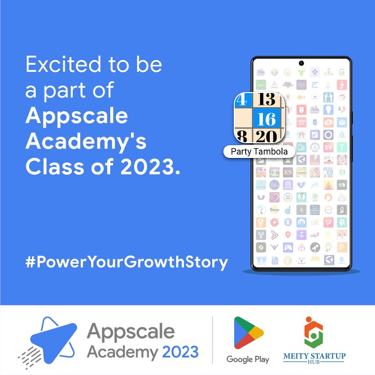 Thrilled that our product Party Tambola has been selected for the Appscale Academy's Class of 2023! Appscale Academy is a Google & Ministry of Electronics and Information Technology (MEITY) of India's startup hub initiative.