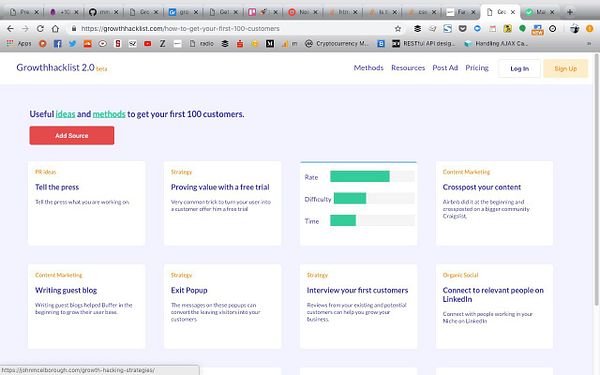 #growthhacklist - Methods and ideas to get your first 100 customers + ranking based on time, difficulty and rating