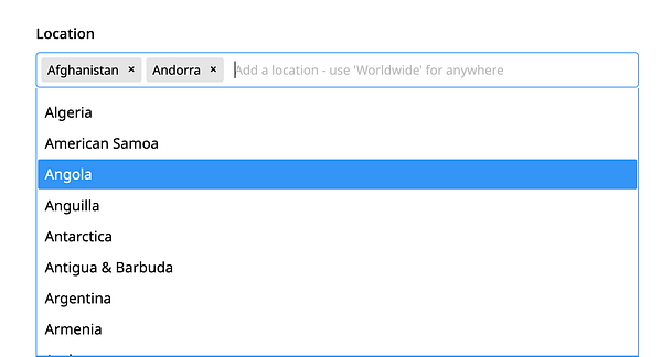 store locations in backend , and use as dropdown – similar to tags so possible to search all content types by location