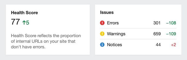 fix some 301 redirects and try to get health score up every day