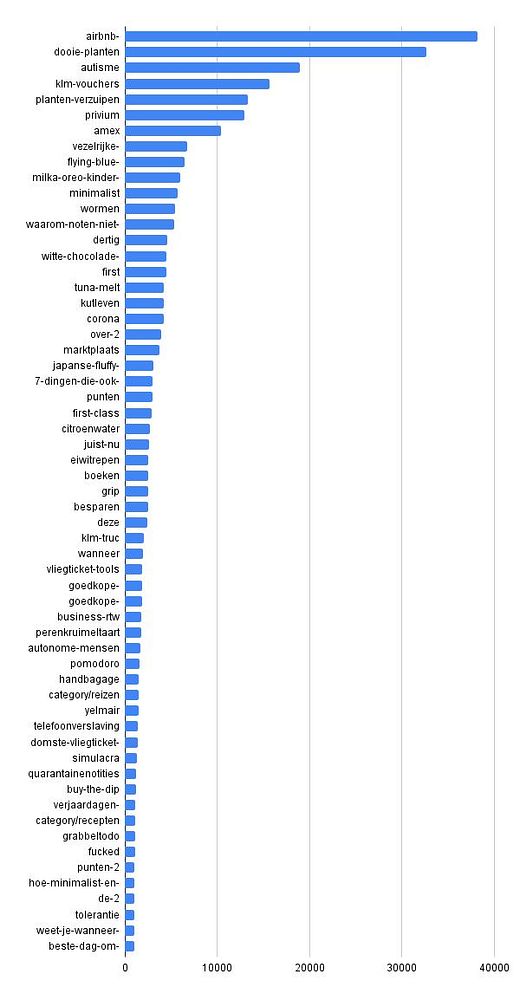 make 80/20 division of blog posts ordered by visits, so make list of 59 (of total 295) most visited blog posts