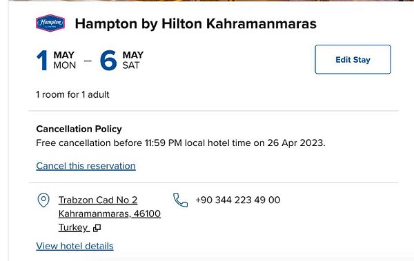 book refundable Hilton 🇹🇷 Kahramanmaras in may 2023 because error fare(?) €12/n