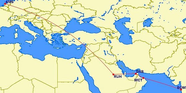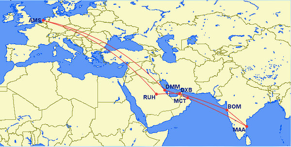 Explore possibilities and prices of traveling AMS-RUH-DXB-BOM-MAA-MCT-DMM-AMS with KL,IX,SG,AI,KL to 🇦🇪 Dubai, 🇮🇳 Mumbai, 🇮🇳 Madras and 🇴🇲 Muscat in june