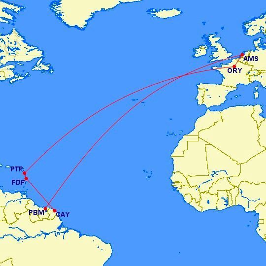 explore possibilities for using flying blue miles to go to 🇫🇷 french guyana, 🇸🇷 suriname and 🇬🇵🇲🇶 french caribbean