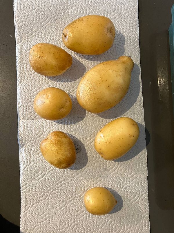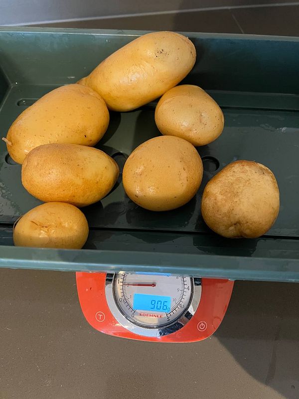 harvest 906 grams of potato from balcony that grew because last year I probably forgot to harvest all