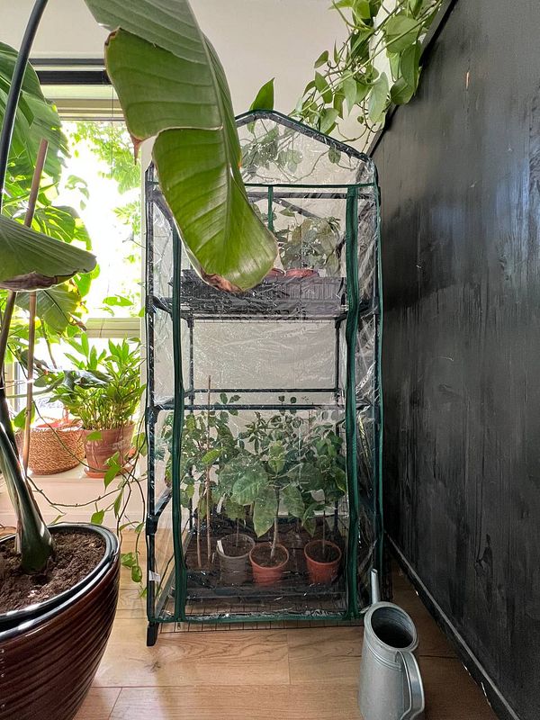 put tropical plants indoor in mini greenhouse because winter is coming and I live in the Netherlands