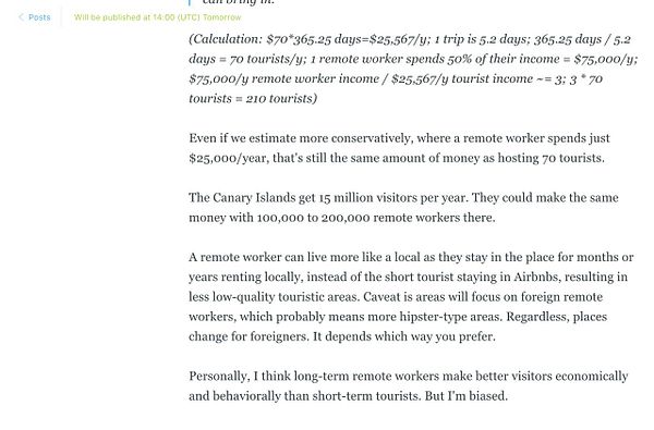 post future of remote work arguing remote workers can make a city 200x more money than a tourist