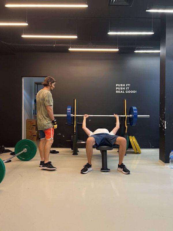 do 4x 5x 42.5kg ohp PR + 47.5kg barbell rows PR + 4x 10x chinups PR