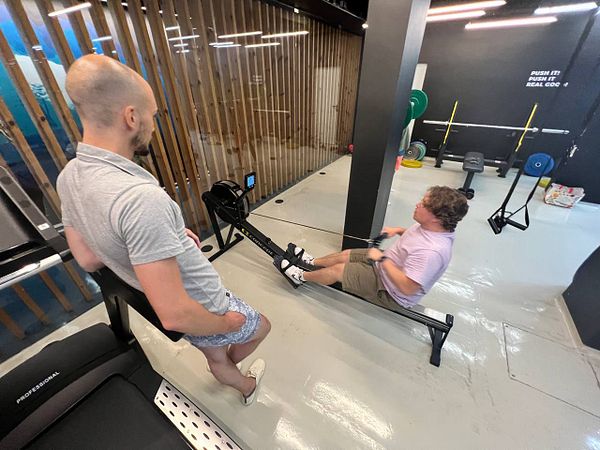 do 4x 4x 45kg overhead press PR + 4x 4x 50kg barbell rows PR