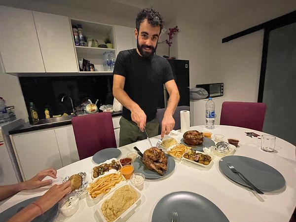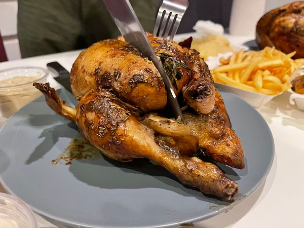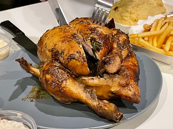 and eat roast chicken