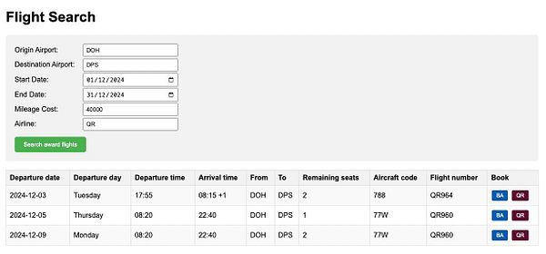 build simple award availability search form