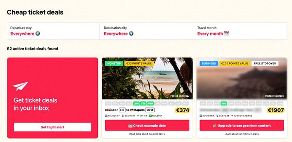 add some deals, now with points and values and also business class in preparation for premium account