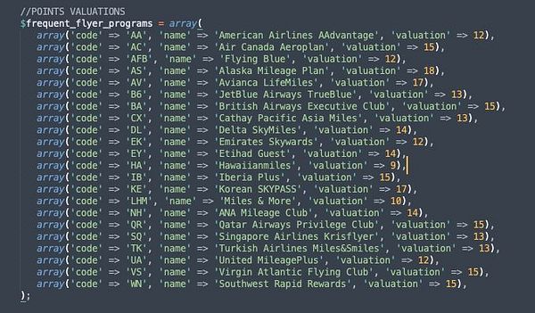 make array with points valuations