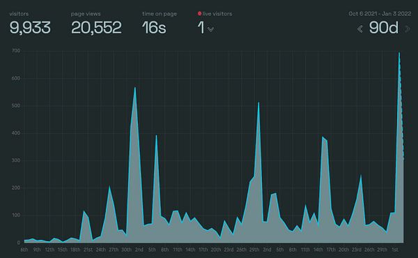 highest number of daily visitors (695), partly due to rt from @marckohlbrugge but also from instagram stories