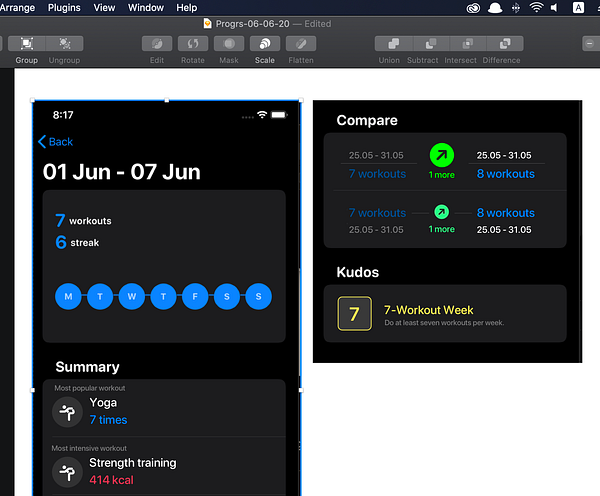 Concept for compare component for ProgrsDetails screen