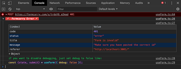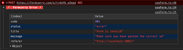 Error handler for React Library #formcarry