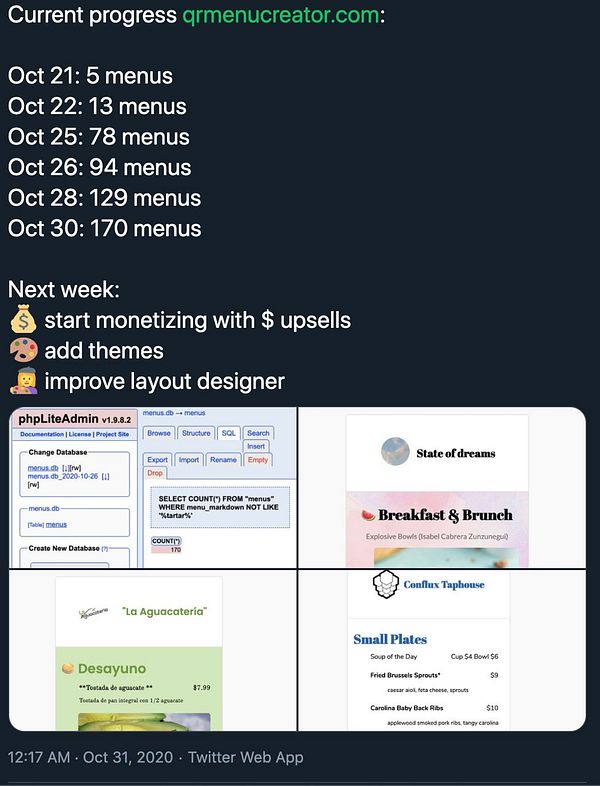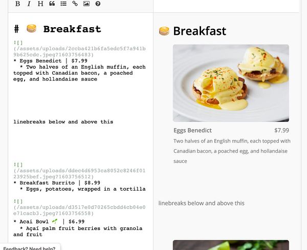 new landing page where you just land inside a mobile device with text/styling editor and can start making your menu