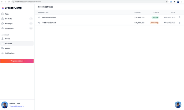 working on creator's public profile page