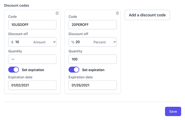 Use an array to manage all discount codes