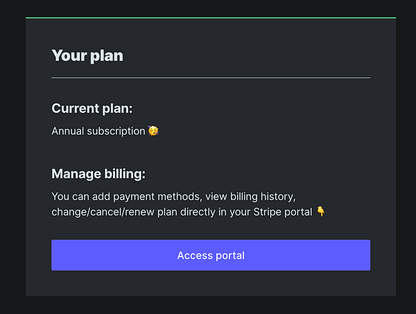 Added Stripe Portal to have user self manage their subscriptions