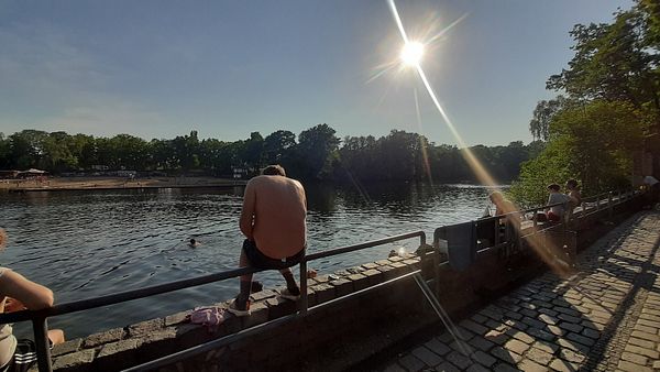 lunchtime swim in sunny lake. going a bit further now