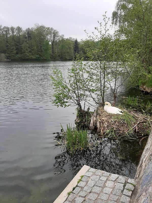 swim done. Mama swan is sitting on 7 eggs according to the park ranger