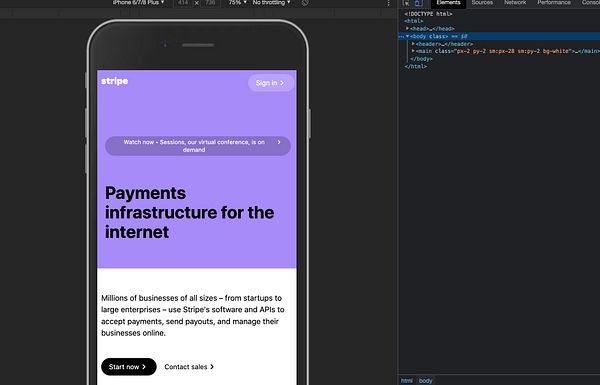 make a stripe home page with tailwind css: