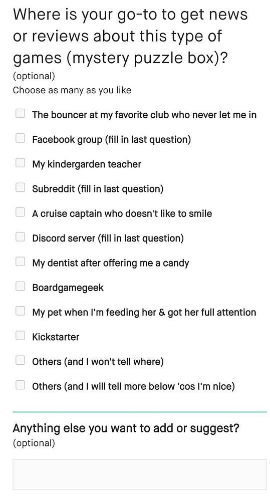 Sent a survey while asking my Kickstarter backers their shipping addresses but nobody replied, so I included some humour... and now I got replies 🤪