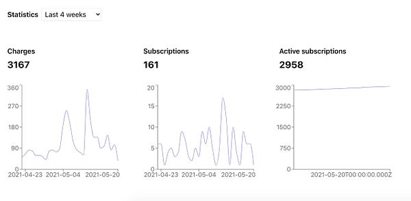 add charge/subscriptions/active subscriptions statistic charts